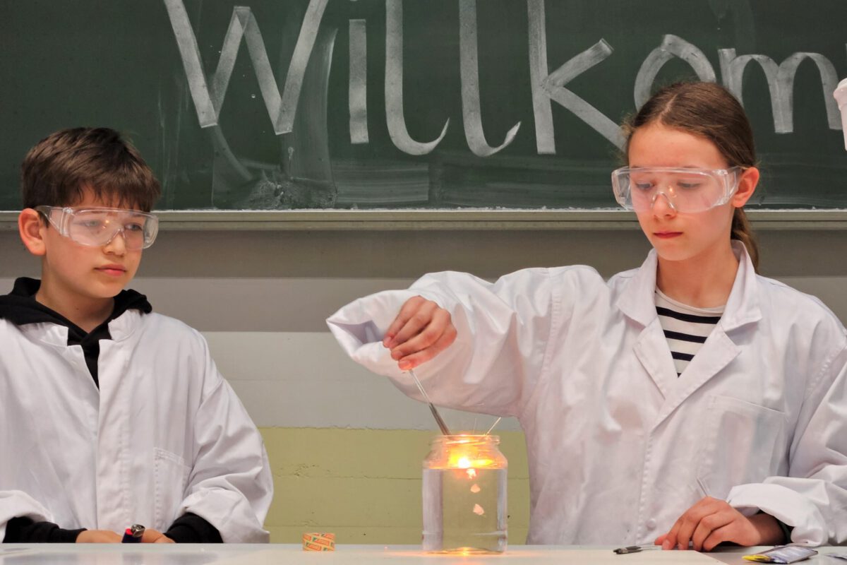 Mit Experimenten präsentieren sich die Klassen fünf und sechs am NaWi-Abend, die siebten Klassen stellen ihre Forschungsarbeiten aus.